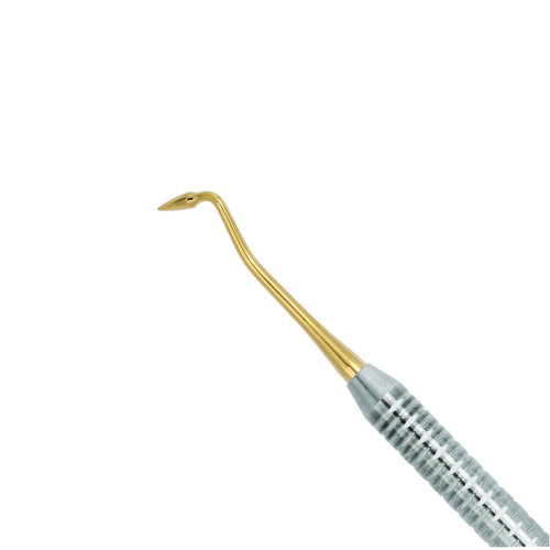La espátula está recubierta de titanio, el recubrimiento permite que el material no se adhiera al instrumento convierte el trabajo de modelización mas fácil y sencillo.