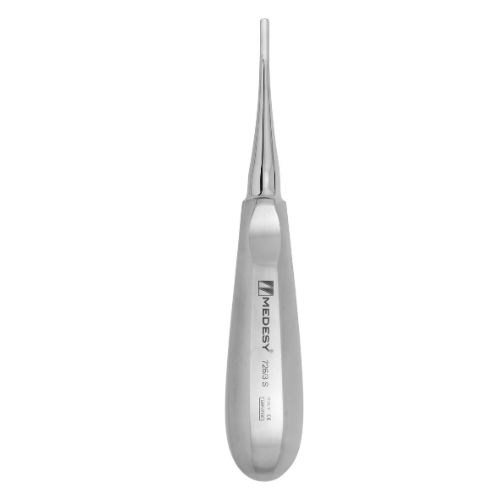 El elevador recto esta fabricado de acero quirúrgico, se caracteriza por su mango simétrico por la cara y contra cara hecho en laser, su parte activa es de 3mm.