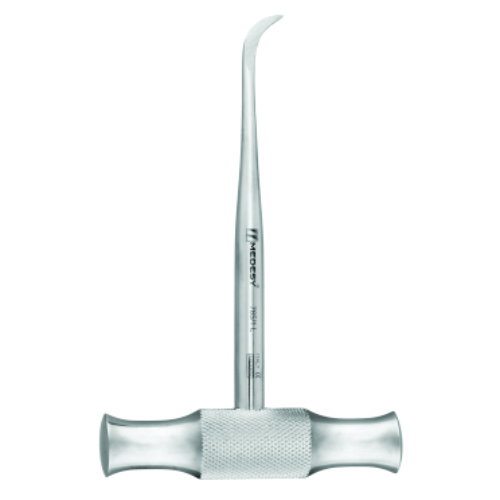 Elevador de mango estriado en forma de martillo, fabricado de acero quirúrgico.