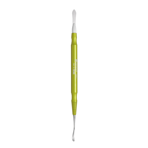 Esta espátula esta diseñada especialmente para esculpir cerámica, tiene un mango ligero de aluminio con punta de acero cuchilla gingival.