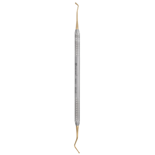 La espátula recubierta de titanio se las utiliza para composite, el recubrimiento de titanio permite que el material no se adhiera al instrumento es mas fácil el trabajo de modelización.