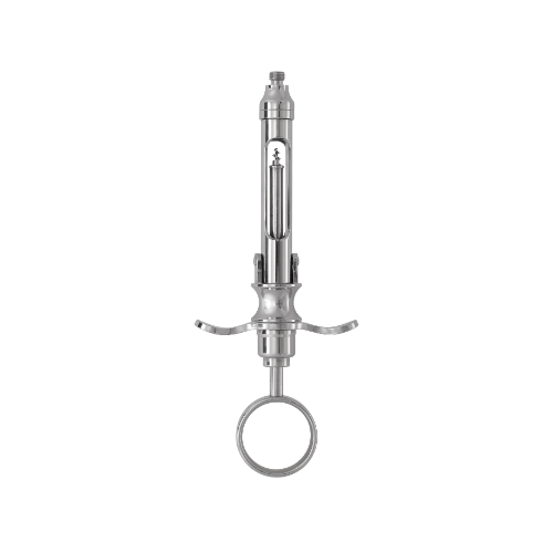 Esta jeringa tiene u punta en aspiral, se la dobla para introducir el anaestésico, para anaestésico de 1.8ml.