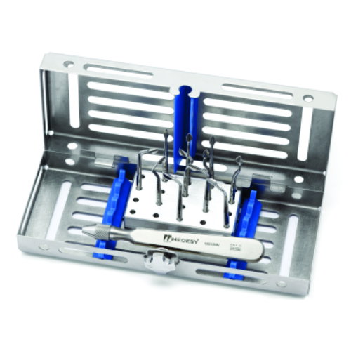 Este kit contiene un mango plano fabricado de acero quirúrgico con 10 puntas intercambiables.