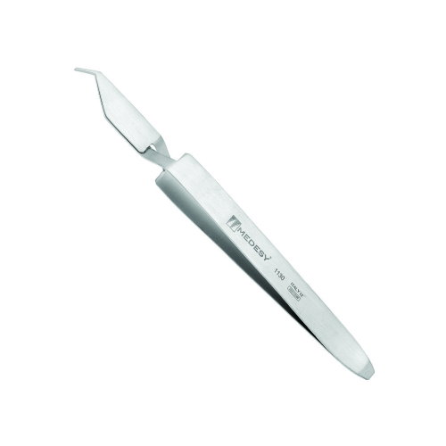 La pinza porta tubos esta fabricada de acero quirúrgico, largo de 130mm, su punta es muy fina donde coloca el slot del tubo y luego en la pieza.
