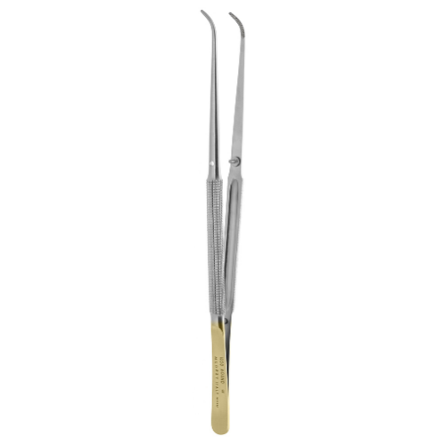 La pinza Round curva esta fabricada en acero quirúrgico, diamantada y con su punta dentada, largo de 175mm.