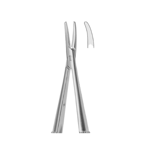 El castroviejo tiene un mango redondeado con estrías lo que lo convierte en un instrumento mas cómodo en la manipulación, mide 140mm de largo y es para agujas 4-5-6.