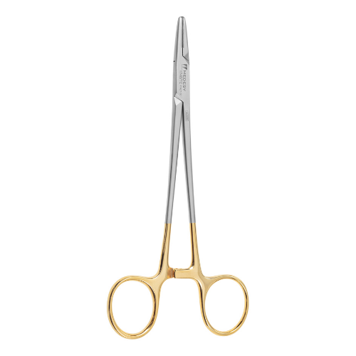 El porta agujas Mayo-Hegar esta fabricado de acero quirúrgico de 160mm de largo, con refuerzo de tucsteno para suturas 2-3-4.